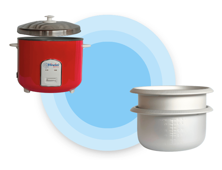 An additional cooking pan has been provided for your cooking convenience. The graduated aluminium cooking pans allow uniform distribution of heat, ensuring efficient and even cooking of rice every time. These pans are designed to be stackable, allowing you to store them inside the cooker itself, saving valuable kitchen space.